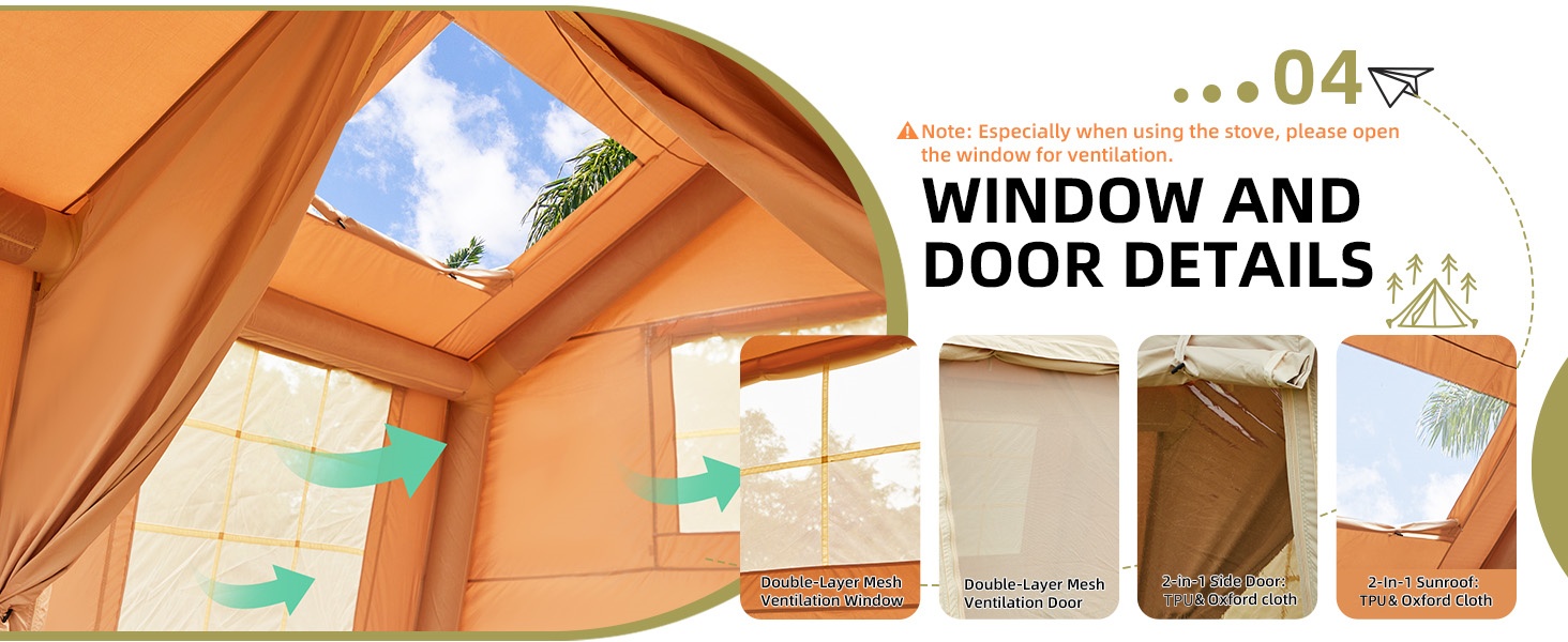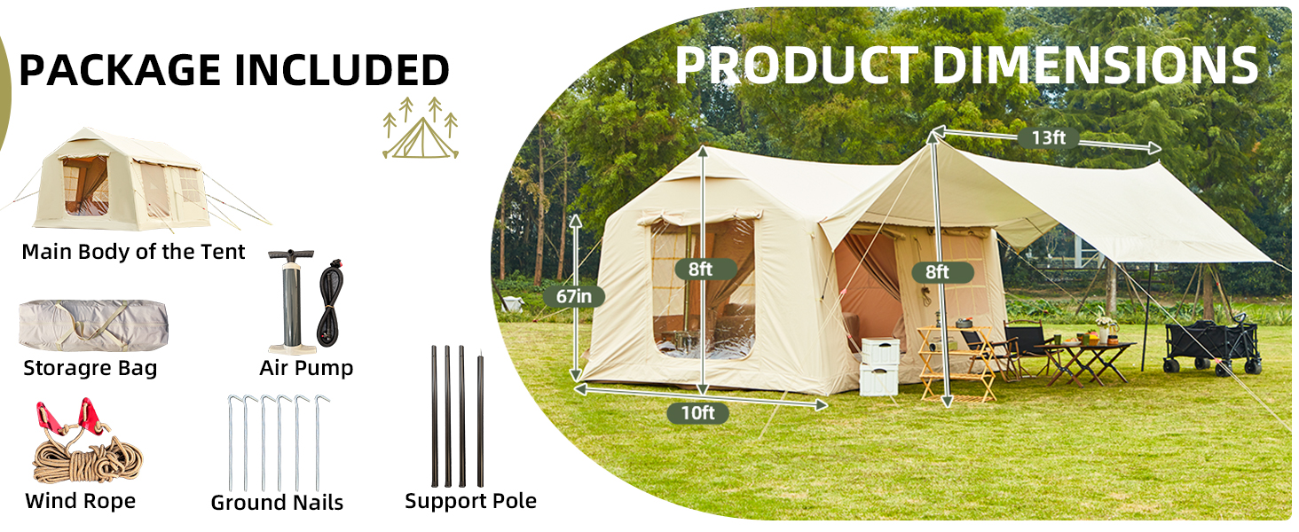 10-12 People Inflatable Tent for Camping 129 sqft Large Inflatable Tent, Easy Setup Glamping Tent with stove jack ,4 Season Tent
