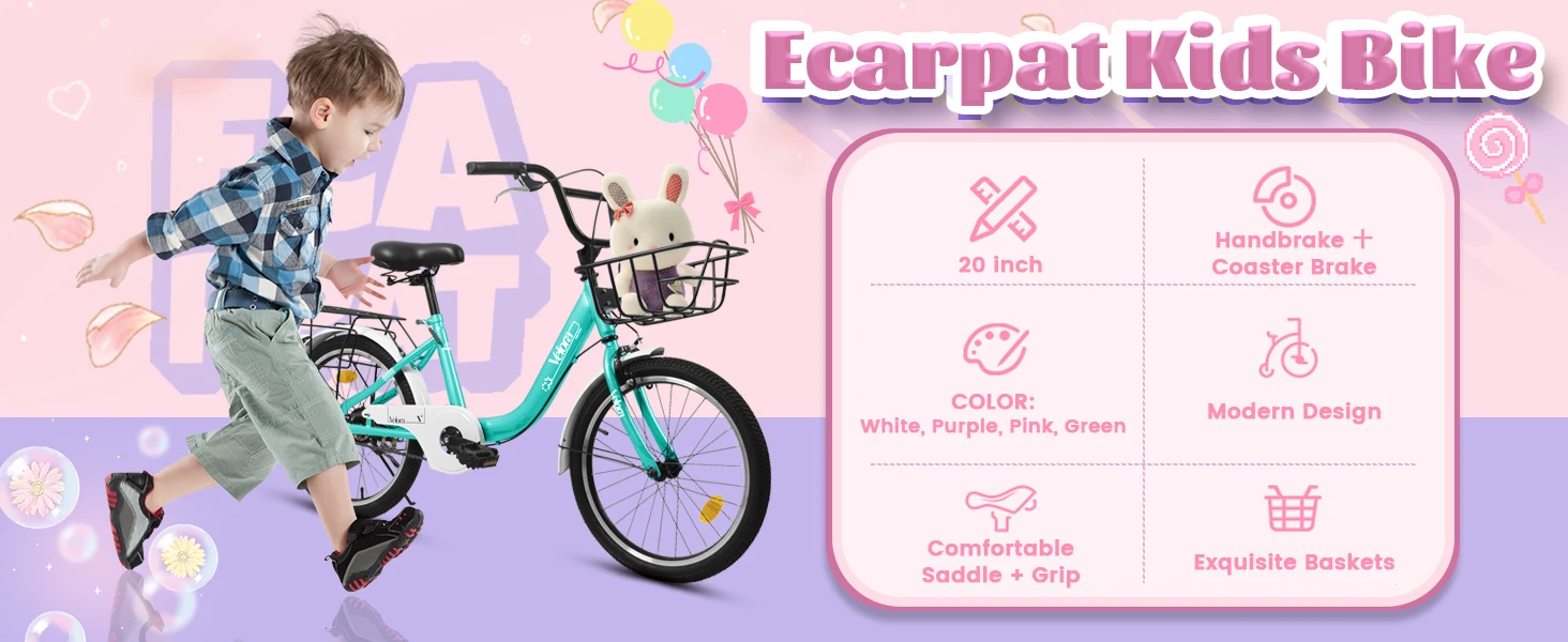 [Durable & Safe Frame Construction] Built with a robust carbon steel frame, this 20-inch kids’ bike ensures long-lasting durability to withstand energetic rides and rough terrain. The 12-inch frame dimensions and 150lb load capacity provide a secure, stable fit for children aged 6-12, while the lightweight design makes it easy for kid riders to maneuver and control with confidence.