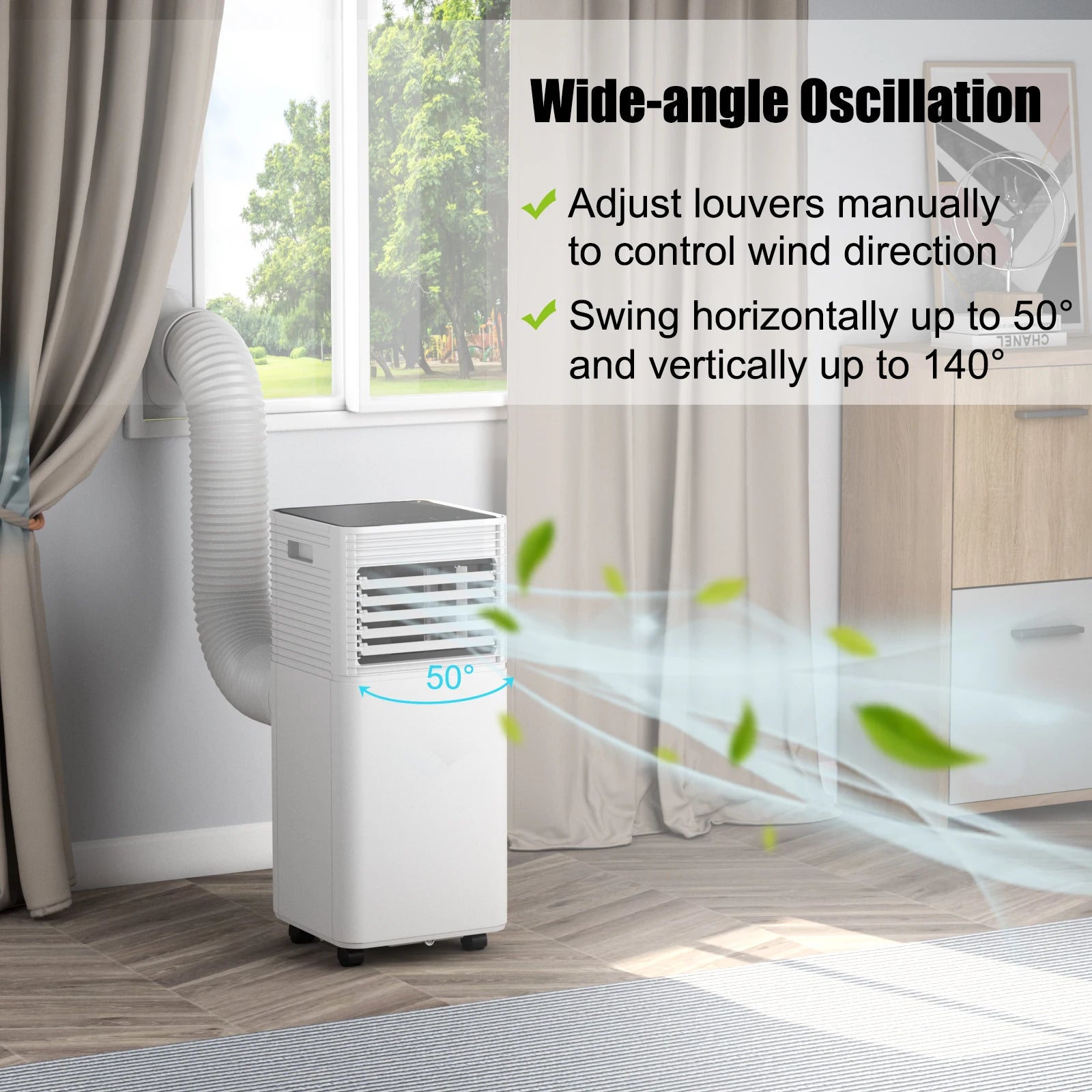 Manual oscillating function offers wide-angle air supply