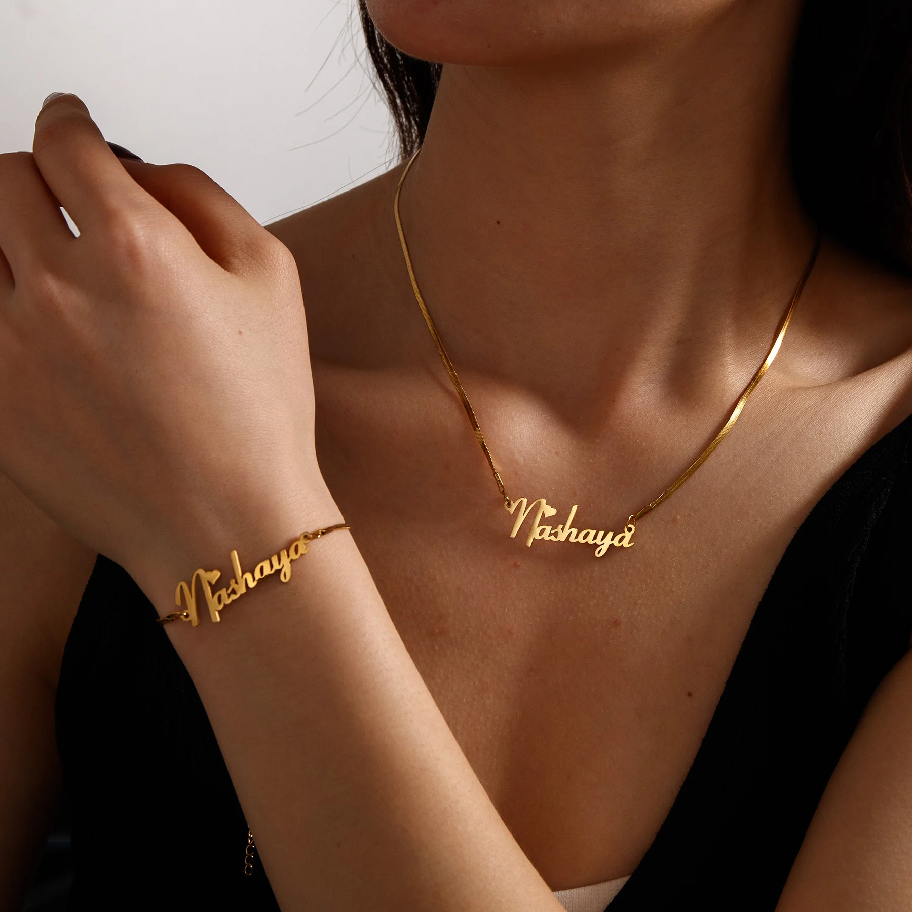Acheerup Peraonalized Name Jewelry Set for Women Kids Stainless Steel Custom Blade Chain Choker Necklace Bracelet Birthday Gift