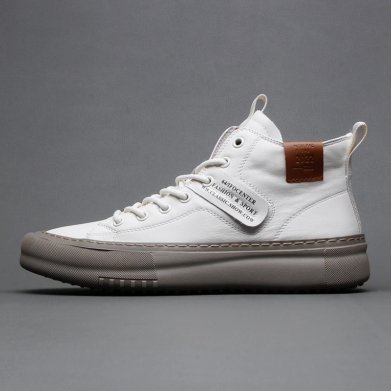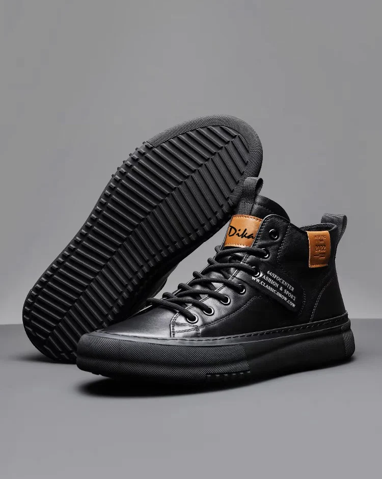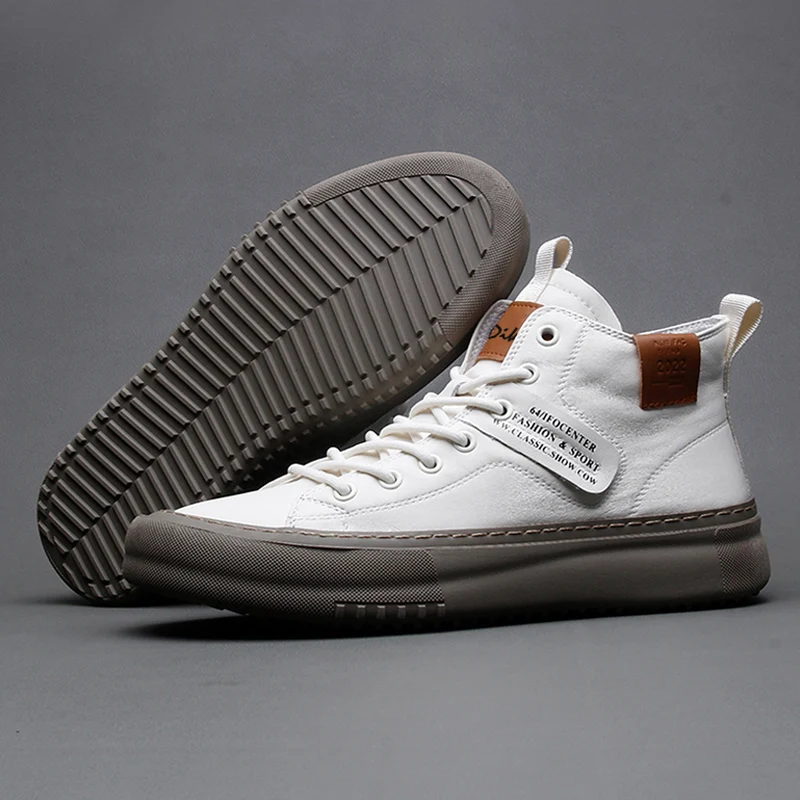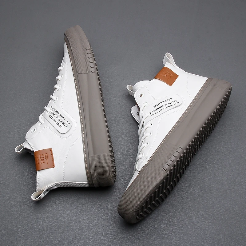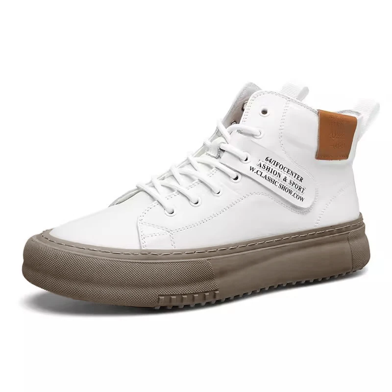Autumn and Winter New Men's Mid-Top Sports Casual Shoes, Men's Boots, Winter Warm Leather Shoes, Versatile White Shoes, Thick-Soled Fashion Short Boots, Men's Fashion Sneakers