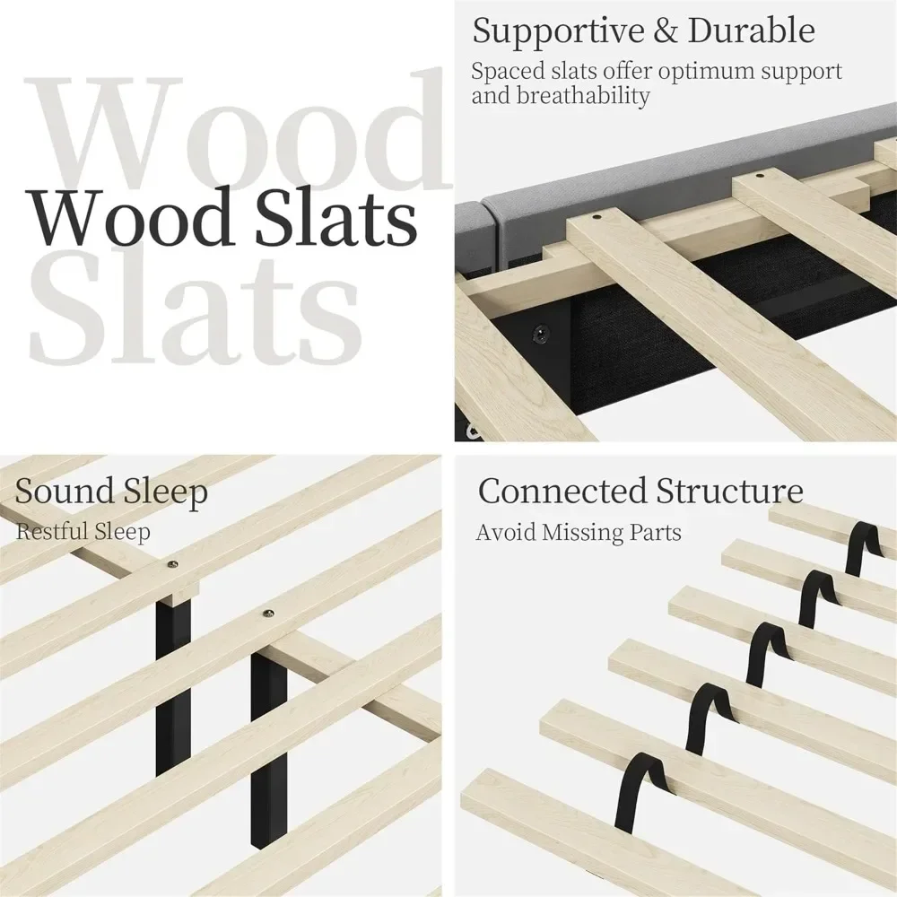 Sturdy Wood Construction: Interior solid wood framework and robust support feet, 12 pieces of durable wooden slats, and a dense foam-padding border increase the comfort and durability of this queen bed frame with wing design. With a maximum weight capacity of 800 lbs