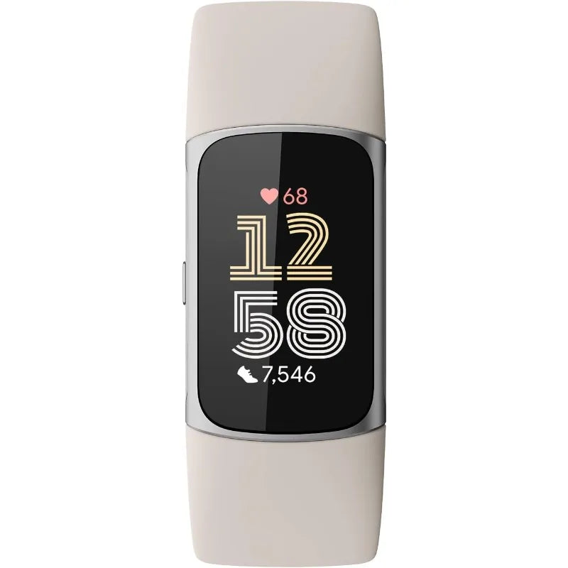 6 Fitness Tracker with Google apps, Heart Rate on Exercise Equipment, 6-Months Premium Membership Included, GPS, Health Tools and More, Porcelain/Silver, One Size (S & L Bands Included)
