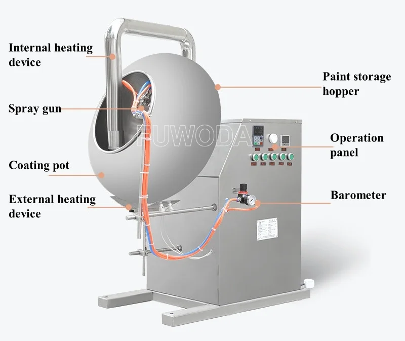 Chocolate Coating Pan Sugar Polishing Candy Snack Making Machines Nuts Peanuts Sugar Candy Coating Machine With Spray Function