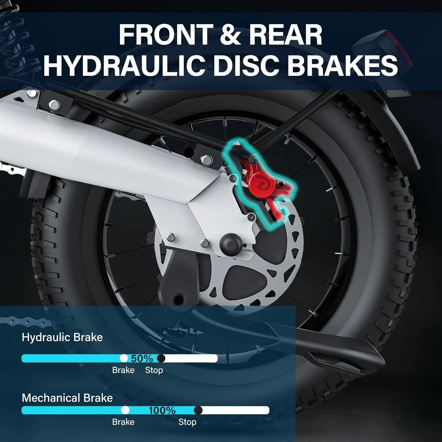 Coswheel Electric bikeT16 With a potent 750W (1000W Peak) brushless motor and a high-capacity 48V 20Ah (960WH) Lithium battery, ensures top-notch performance, effortlessly reaching speeds up to 28MPH.