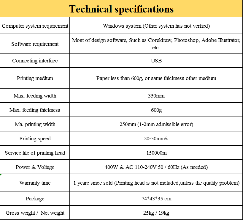 All kinds of paper or same thickness other medium (Smooth surface materials)