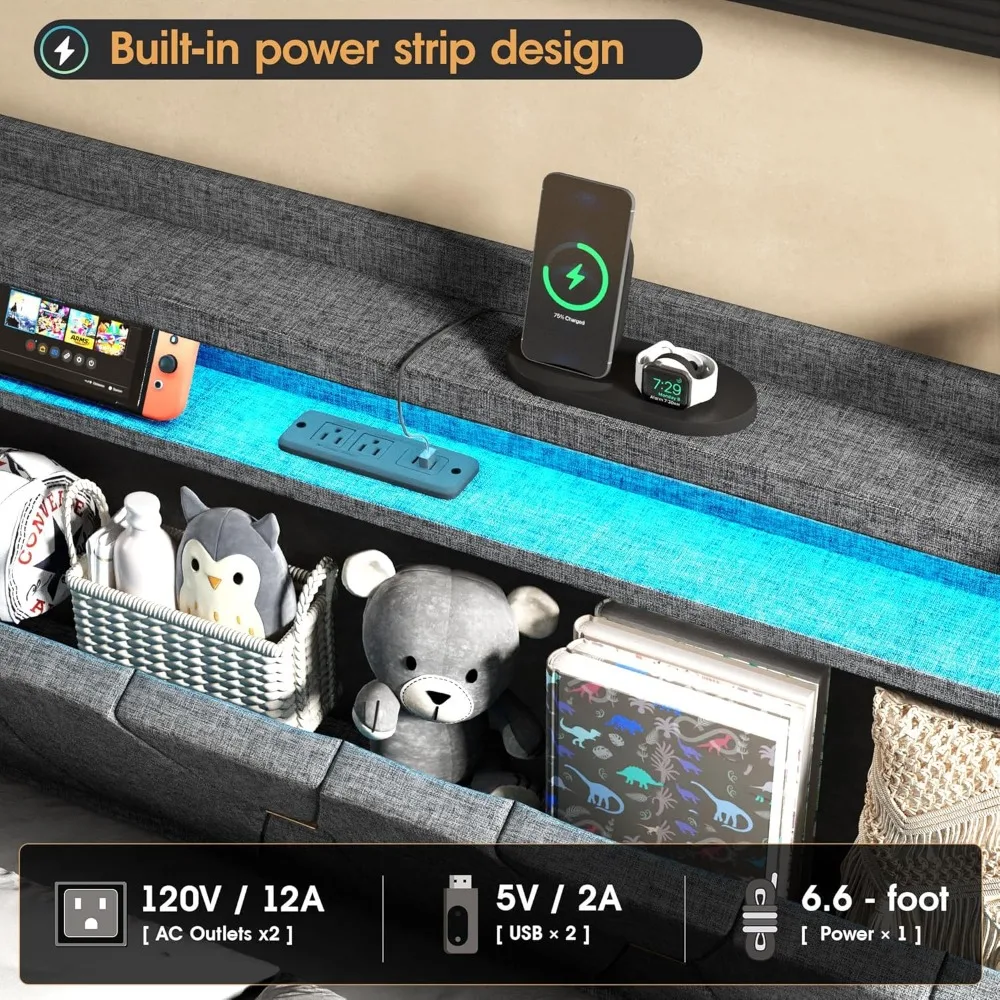 - 【STURDY AND DURABLE】:This Full Size bed frame with storage comes with, made of high-grade MDF eco-friendly material, the sturdy metal frame comes with soft foam and linen. This material is safe and environmentally friendly, ensuring no dangerous or unpleasant odors. The sturdy steel frame and extra center legs make the bed more load bearing and less likely to buckle.
