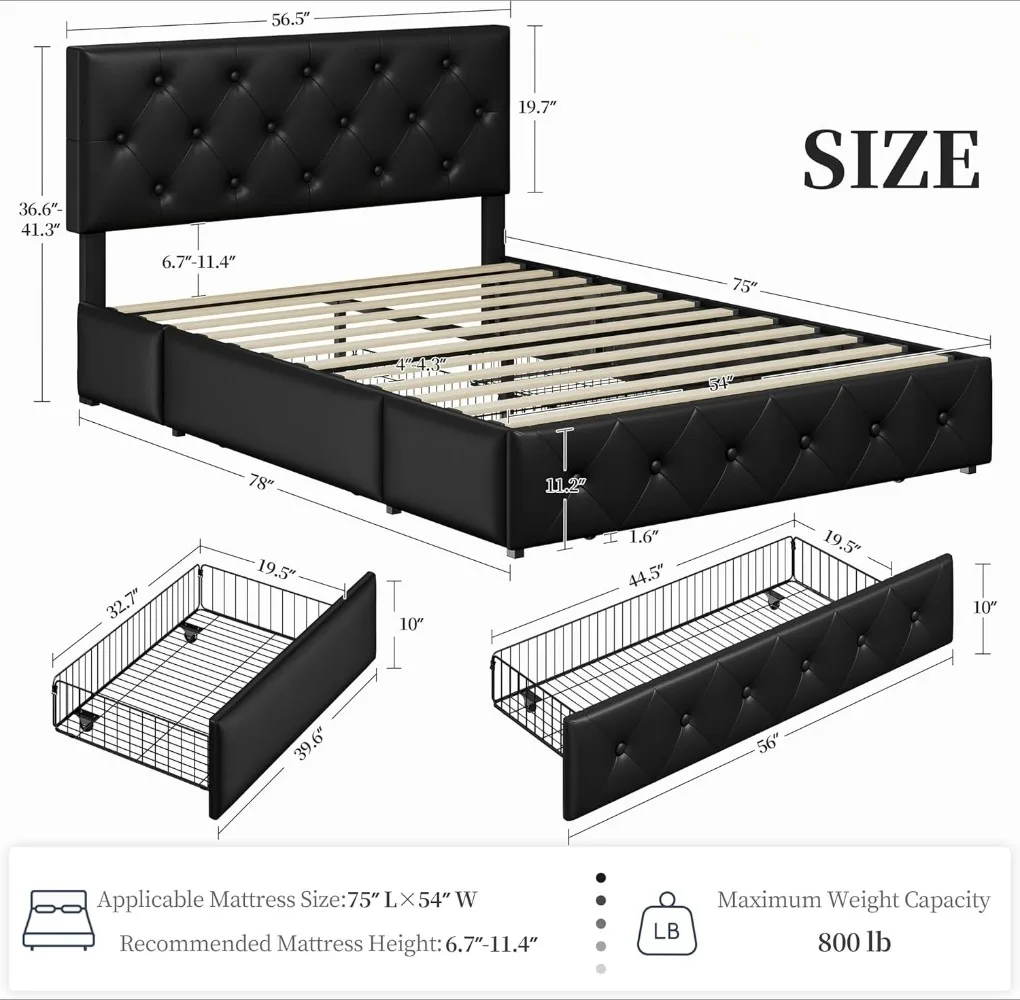 - Easy Cleaning: Smooth painted metal surface and PU leather upholstery make cleaning this storage bed frame a breeze. You need to wipe it with a dry or damp cloth