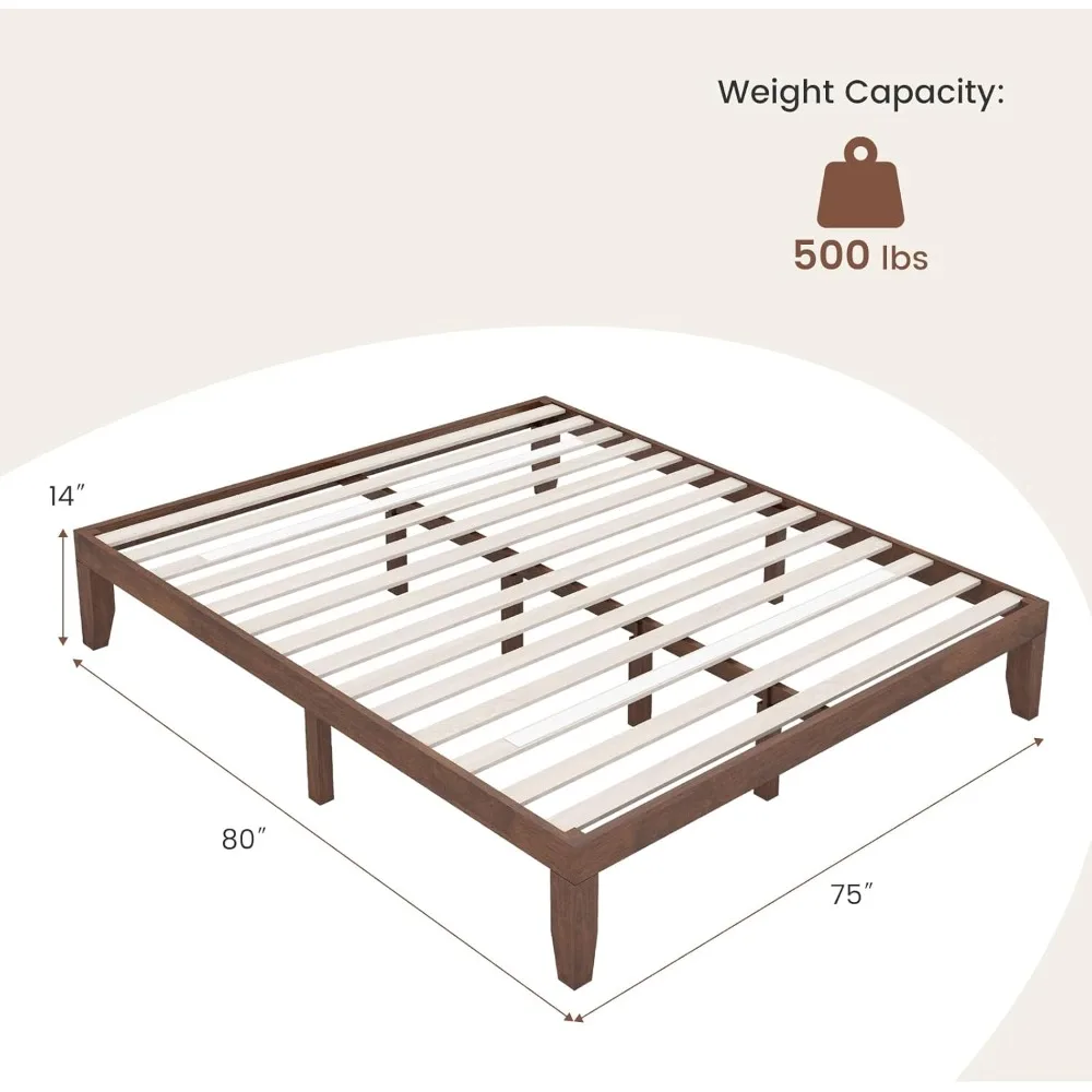 Giantex 14 Inch King Wood Platform Bed Frame, Minimalist Style Mattress Foundation with Solid Rubber Wood, Heavy Duty Wood Slat