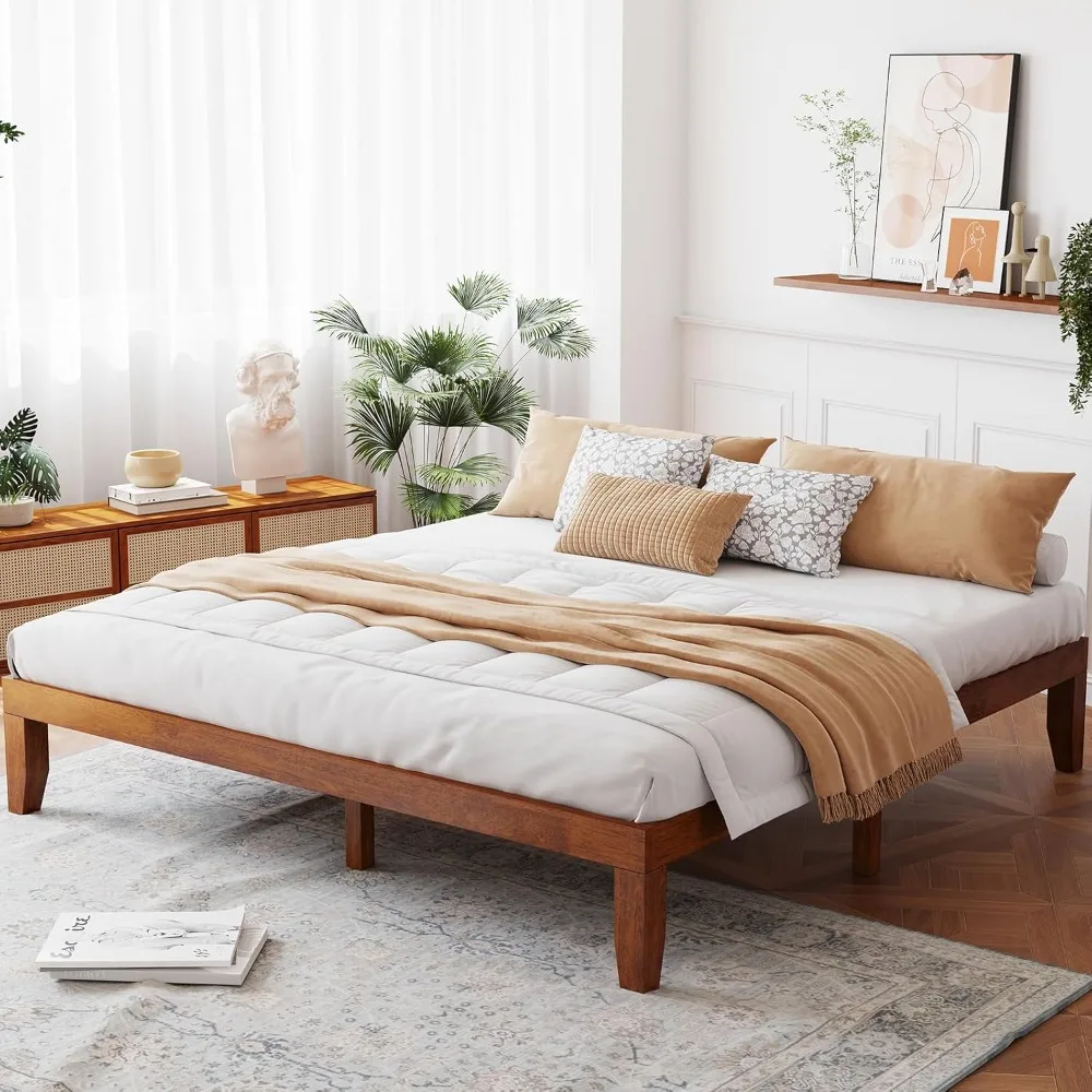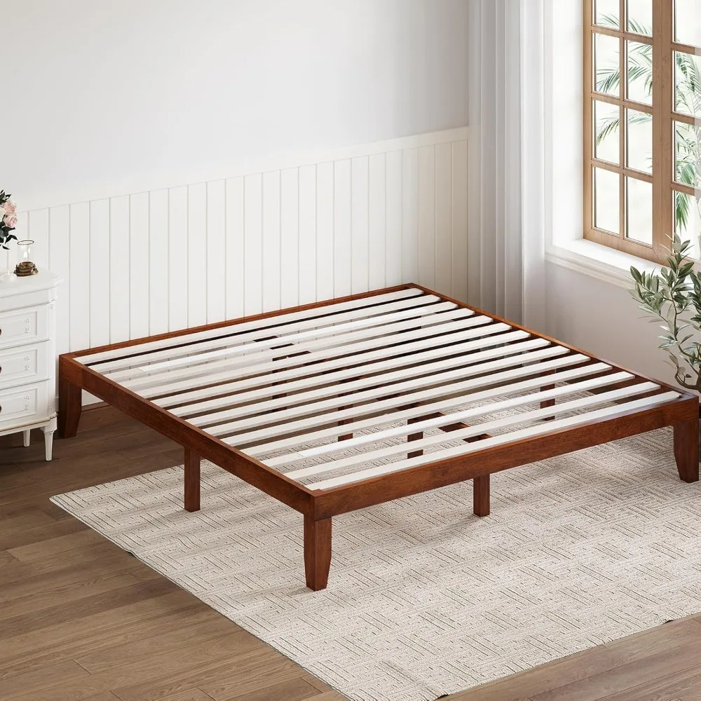 - [Solid Wood Bed Frame]: This king bed frame is made of 100% solid rubberwood frame and poplar support slats, which possesses great strength and durability. Besides, this bed frame with 6 support legs, the weight and pressure of the entire bed frame can be evenly distributed, so it won't make noise or shake when you turn over.