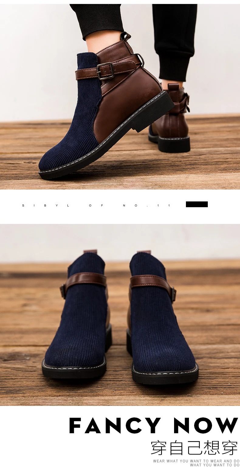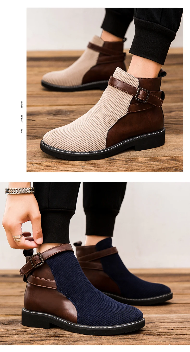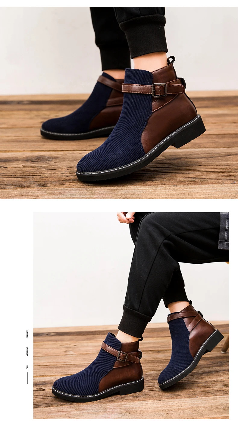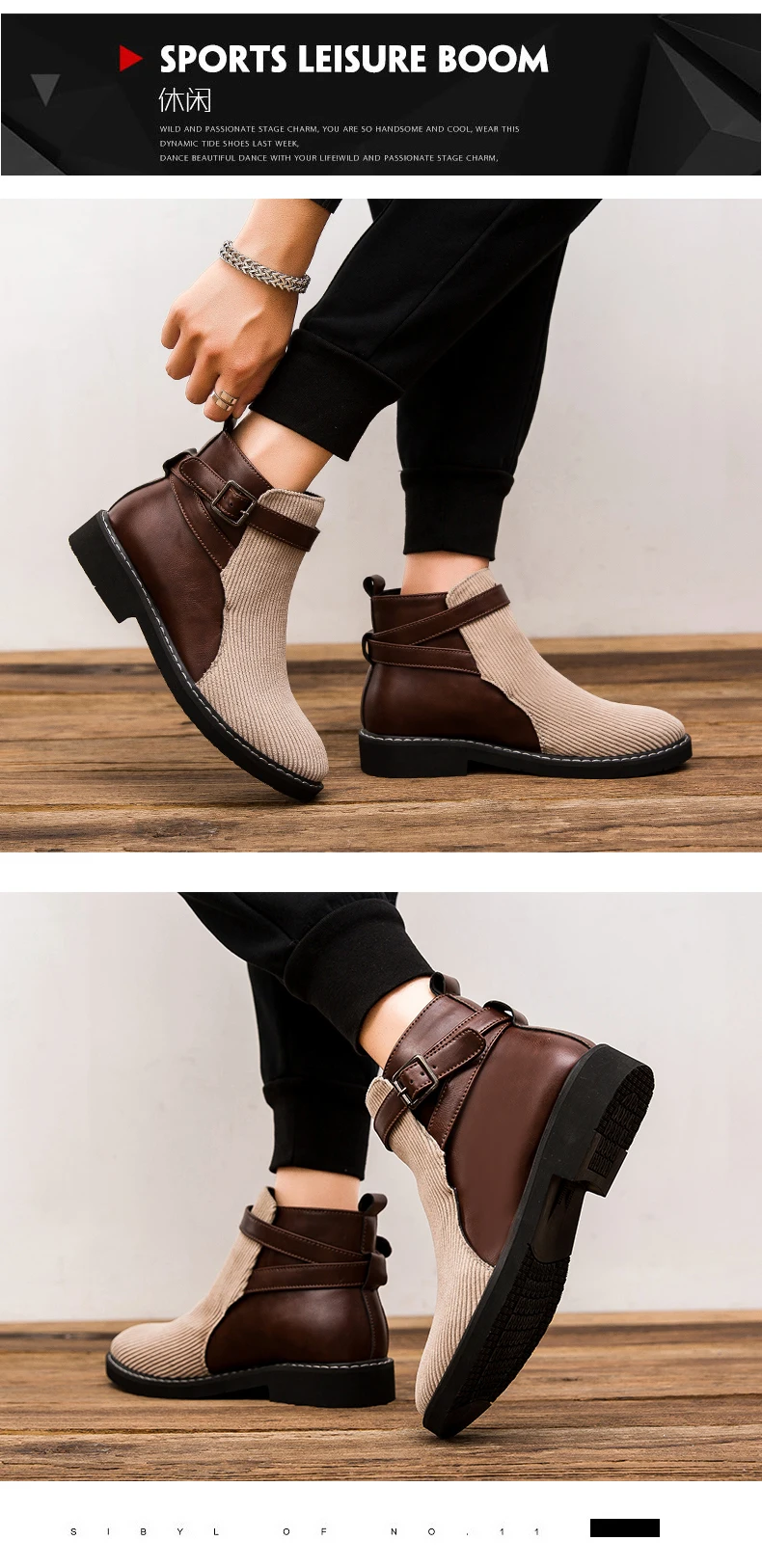 High-top Chelsea Boots, Multi-color Belt Buckle Men's Boots, Pointed-toe Large-sized Retro British Style Men's Boots