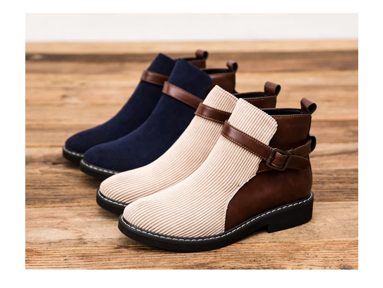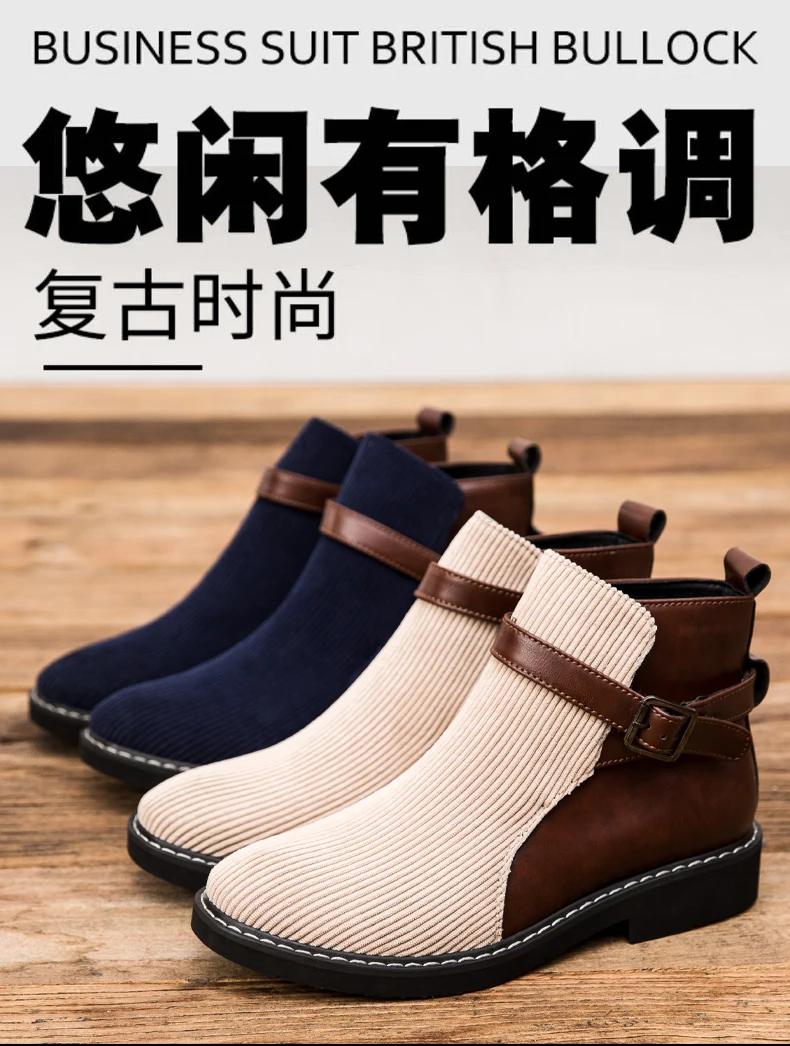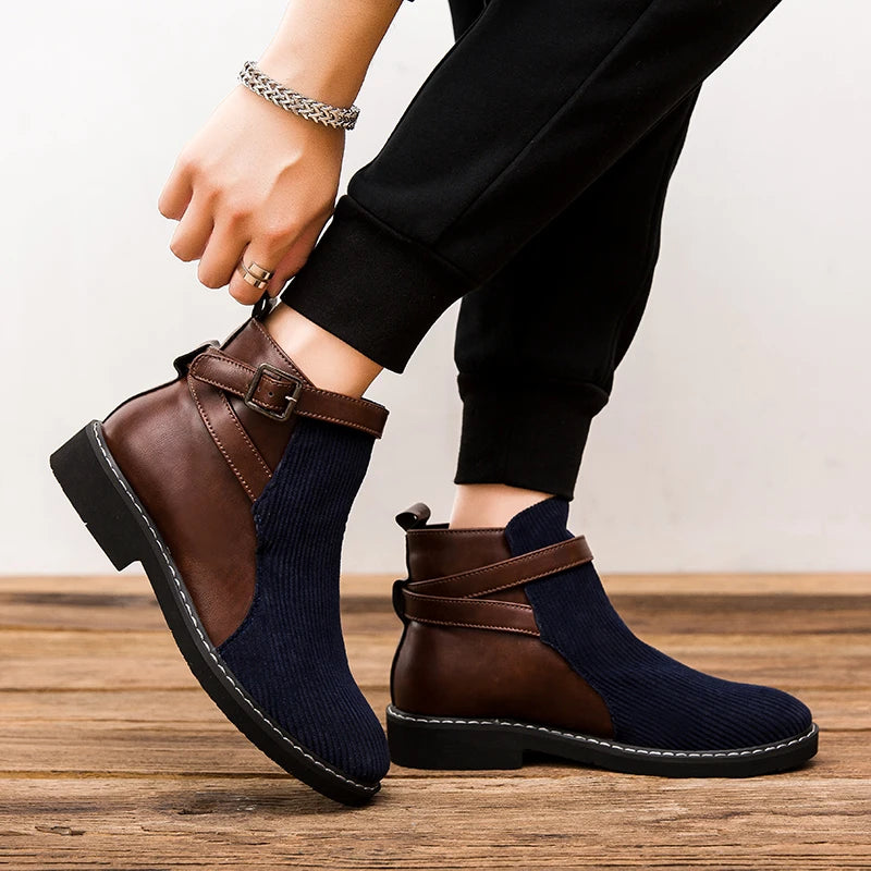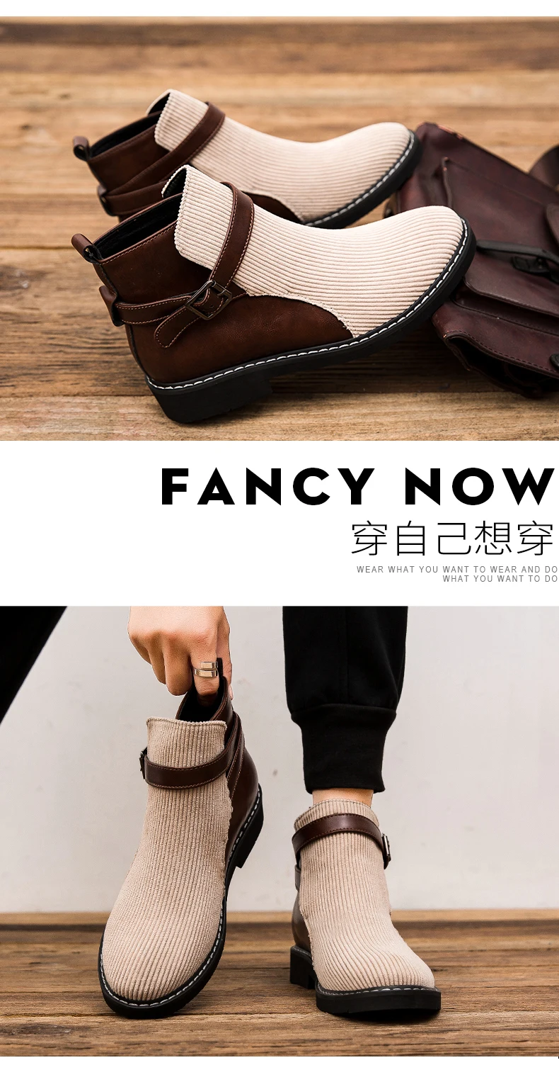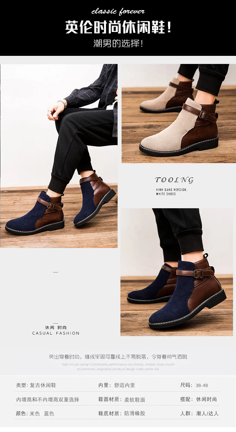 High-top Chelsea Boots, Multi-color Belt Buckle Men's Boots, Pointed-toe Large-sized Retro British Style Men's Boots