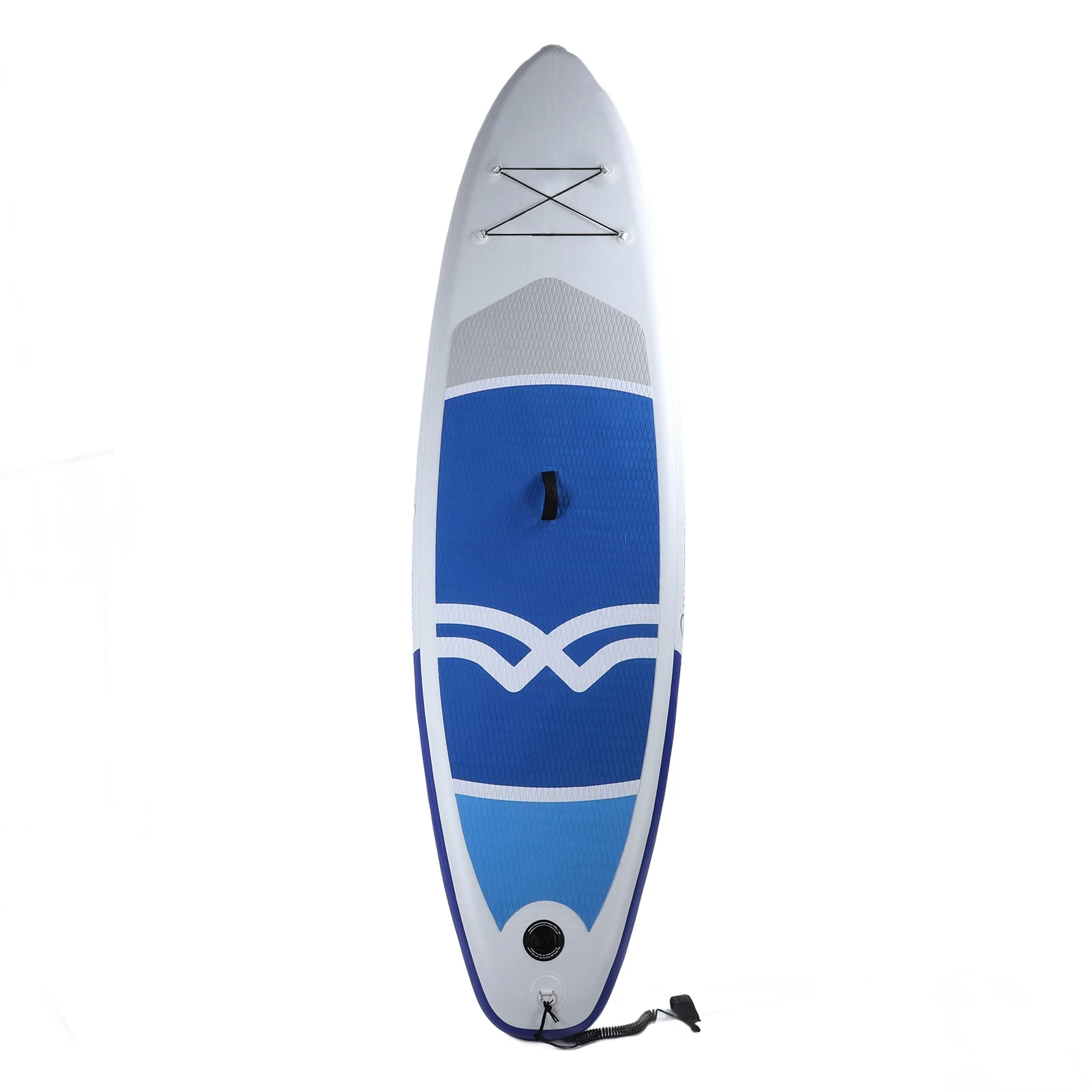 The extra wide surfboard design is easy for beginners to stand up and keep balance. Made of the high grade material which is stiff and sturdy blow up. Soft anti slip EVA deck pad greatly improved stability and safety while standing. Quickly inflates and deflates for portability. Great for adults, teens, youth with pets of all skill levels.Material: PVC + EVA