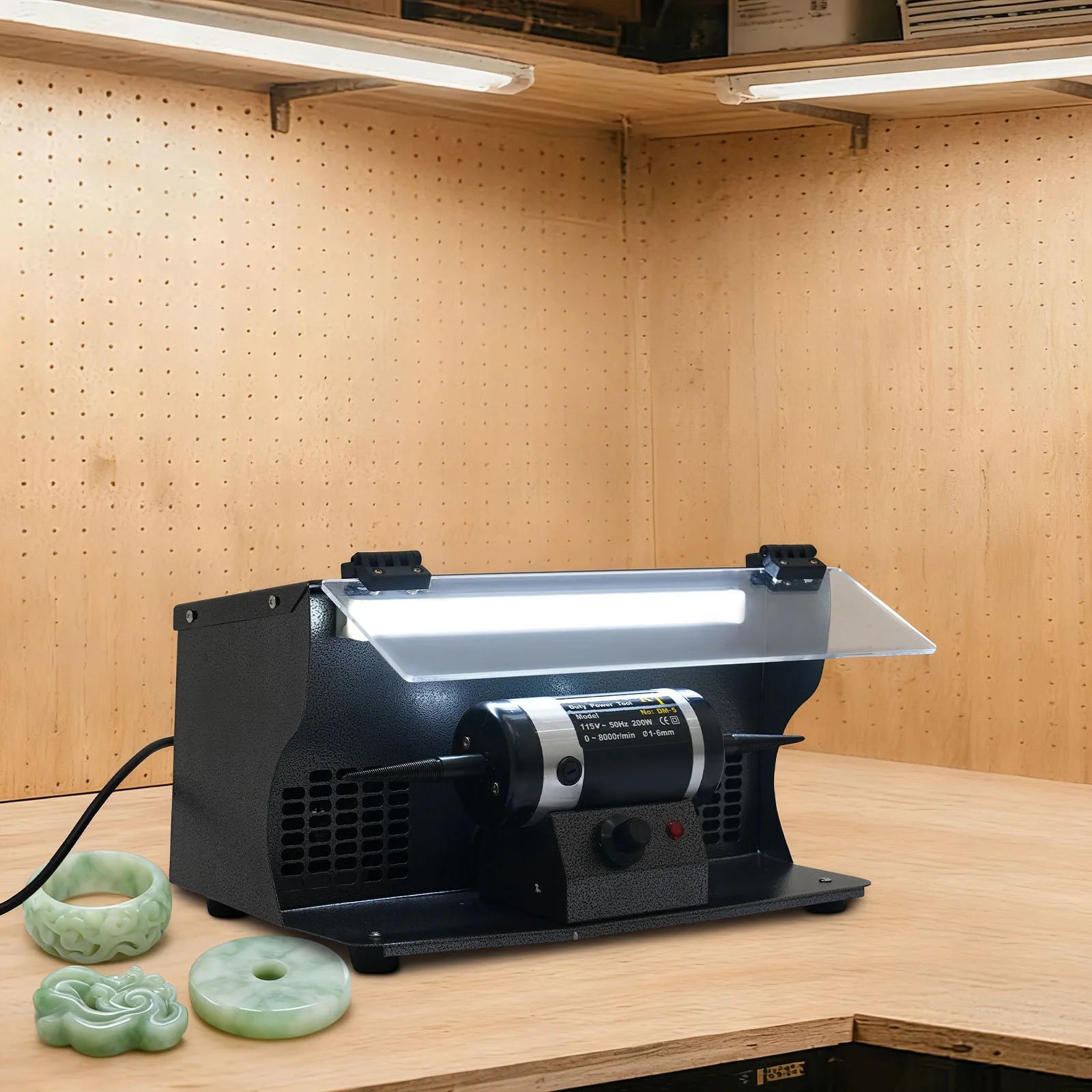 Well-Considered: The polishing machine is fitted with an acrylic eye shield above it, which protects your eyes from dust or debris flying off during the polishing process without compromising your focus on the task at hand. The LED light provides sufficient illumination to ensure that the polishing details are handled in place. What's more, the external carbon brush design is easy to replace, reducing the difficulty and cost of equipment maintenance.