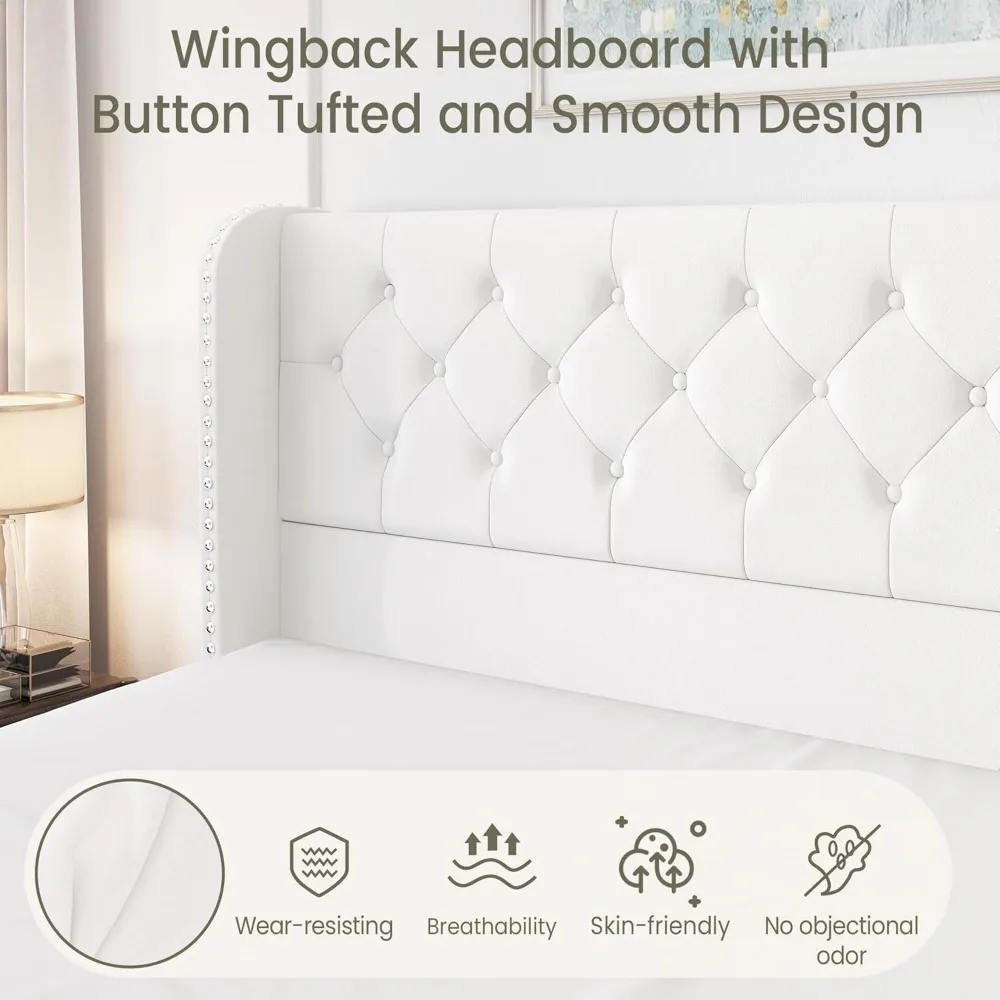 - 【Bed Frame with High Headboard】 The 47" headboard of king platform bed frame adds a touch of grandeur to your bedroom; Sink into the upholstered headboard, providing a supportive and comfortable backdrop for reading, watching TV, or simply unwinding
