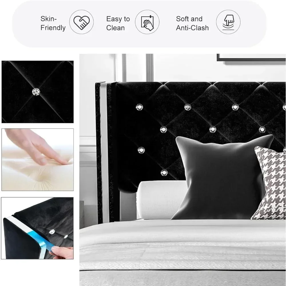 - Modern Light Luxury Design - Using high-quality faux leather headboards & footboards inlaid with sparkling diamond, our full size bed frames provide a luxury charming style in a unique way for your bedroom, which makes your room becoming a centerpiece of your house.
