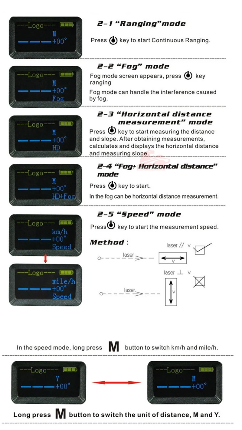 ◐ In the "Speed" mode, the unit of the measured value needs to be converted separately. (Km/h or mile/h)