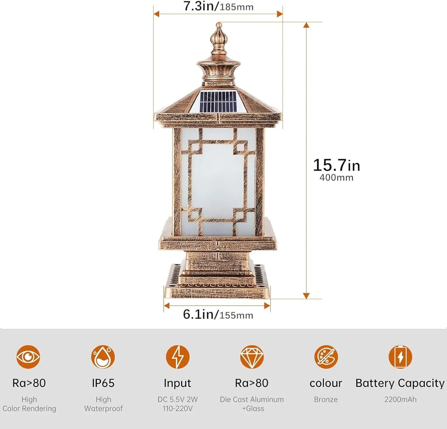 👍【EASILY ASSEMBLE】Height: 15.7", Shade Diameter: 7.3", Recommended for mounting on columns larger than 6.1" x 6.1". suitable for corridors, courtyards, villas, gardens, porches, Quick and painless installation with no wiring required.