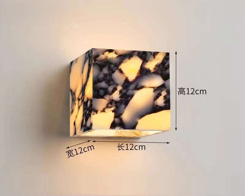 Luxury Black Cuboid Natural Stone Wall Lamp High-end Bedroom Bedside LED Sconce Living room Bathroom Waterproof Lighting Fixture