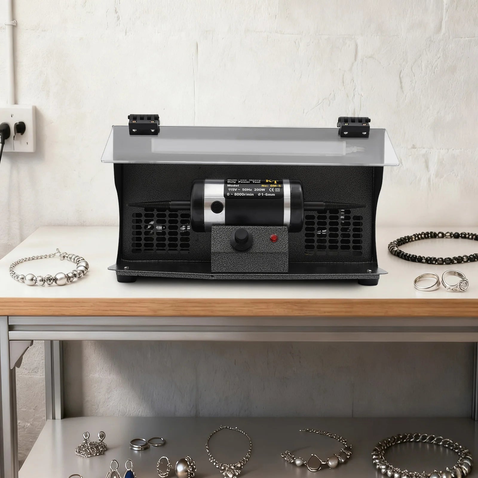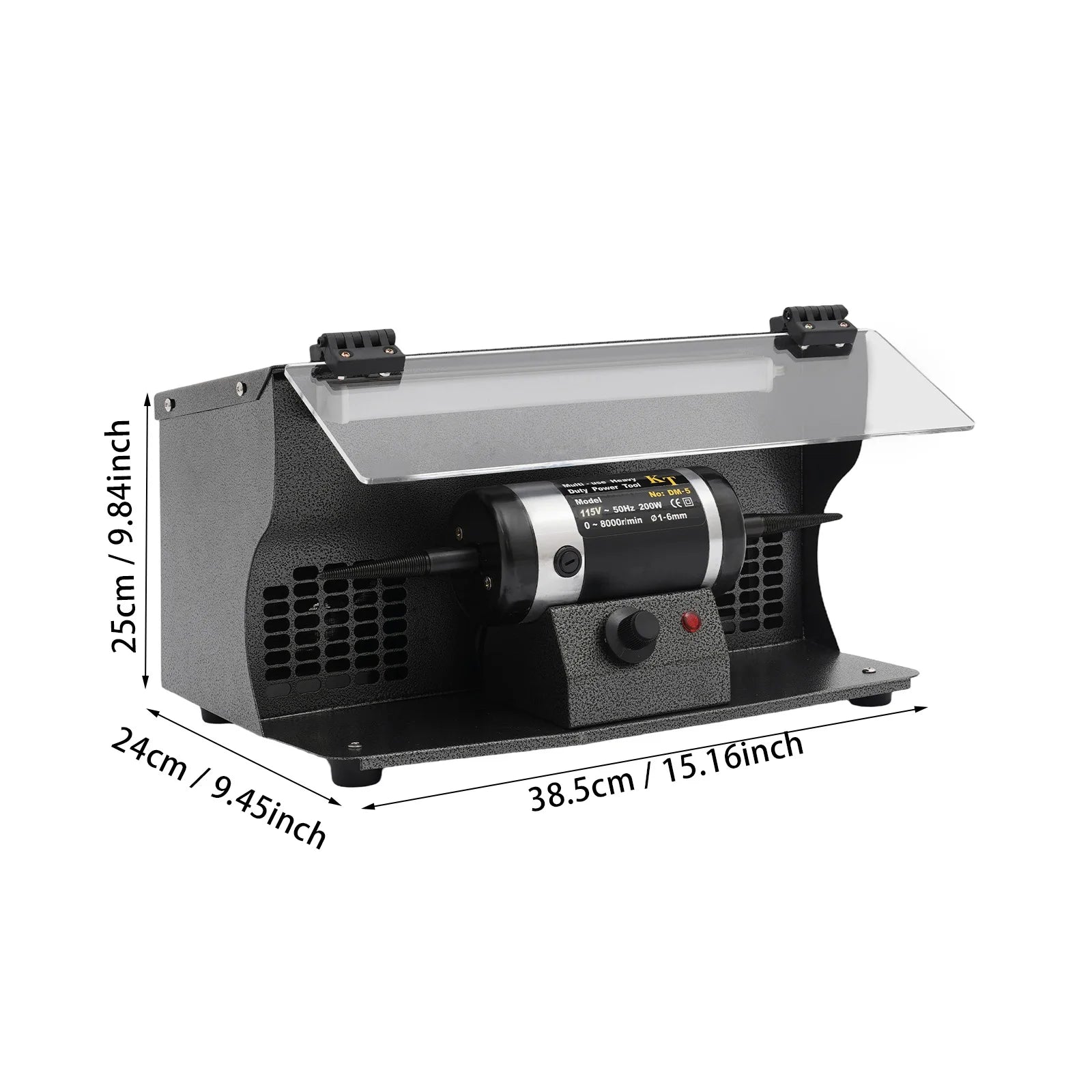 Well-Considered: The polishing machine is fitted with an acrylic eye shield above it, which protects your eyes from dust or debris flying off during the polishing process without compromising your focus on the task at hand. The LED light provides sufficient illumination to ensure that the polishing details are handled in place. What's more, the external carbon brush design is easy to replace, reducing the difficulty and cost of equipment maintenance.