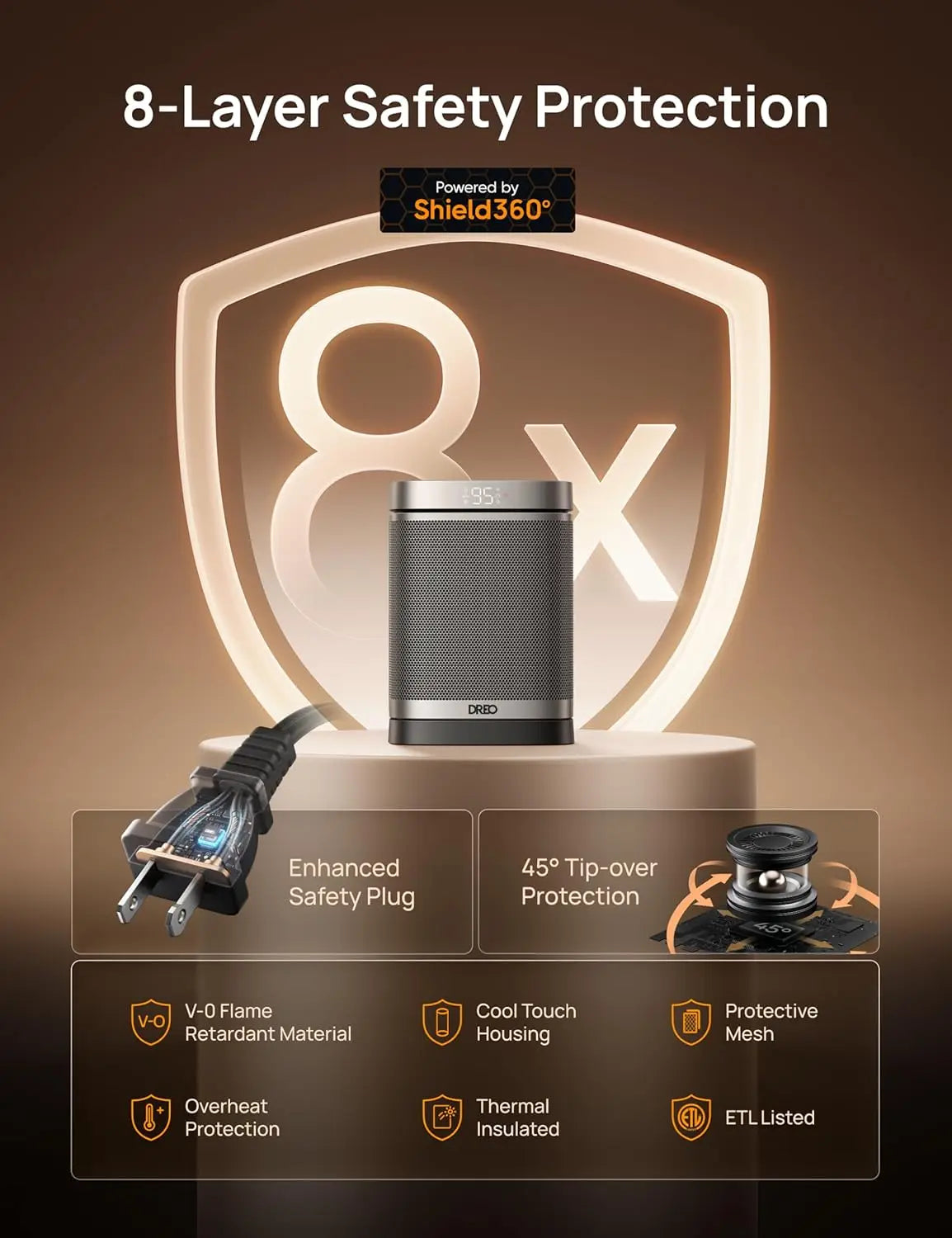 This portable electric heater is designed to provide efficient and safe heating for indoor spaces like bedrooms and offices. It features a PTC ceramic element that delivers 1500W of power for quick warmth while maintaining energy efficiency. With a remote control included, you can adjust settings conveniently from across the room. The built-in thermostat helps maintain your desired temperature automatically, ensuring comfort without constant manual adjustments. A 70-degree oscillation function distributes heat evenly throughout the space, reducing cold spots and enhancing overall coziness. Set the 12-hour timer to schedule heating cycles according to your daily routine, saving energy when not needed. Choose from five different modes to customize the heat output based on your preferences and weather conditions. This heater operates quietly, making it ideal for use in bedrooms or quiet environments where noise might be disruptive. Safety features include overheat protection and tip-over shut-off to prevent accidents, ensuring peace of mind during use. Its compact and portable design allows easy movement between rooms, providing versatile heating solutions wherever you need it most.